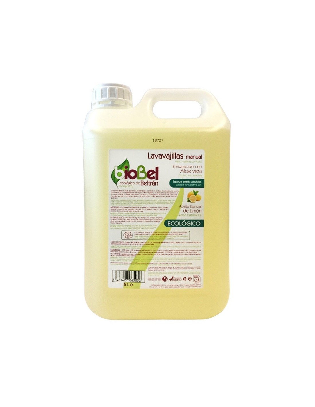 Biologische en veganistische vaatwasser met aloë vera. Reinigt en ontvet zonder de handen te beschadigen. Spaarformaat van 5 liter, ideaal voor dagelijks gebruik.