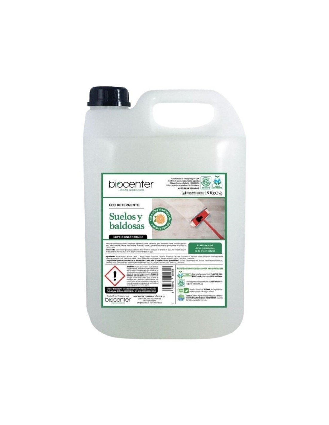 Biocenter's Eco Vegan Vloer- en Tegeldetergent is een geconcentreerde reiniger die is ontworpen om verschillende soorten vloeren en oppervlakken op een effectieve en milieuvriendelijke manier schoon te maken.