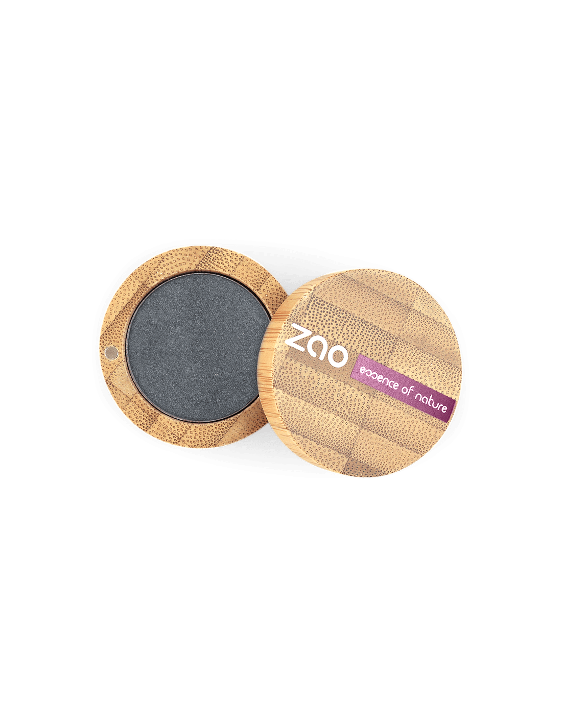 Zao Make up parelmoer oogschaduw in tint 110 Metal Grey, ontworpen om een stralende en verfijnde finish te geven met een fijne en aangename textuur bij contact met het ooglid.
