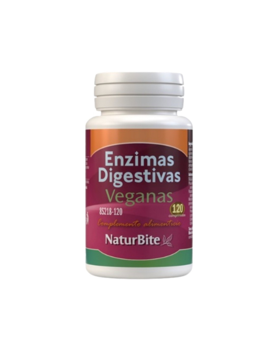 Digestive Enzymes Vegan 120 tabletten van Naturbite is een supplement dat is samengesteld om het spijsverteringsproces op natuurlijke en effectieve wijze te verbeteren. De combinatie van plantenenzymen - protease, amylase, lactase, cellulase en lipase - helpt bij het afbreken van eiwitten, koolhydraten, zuivelsuikers, vezels en vetten, waardoor de spijsvertering wordt vergemakkelijkt en ongemakken zoals een opgeblazen gevoel, winderigheid of zwaar gevoel na de maaltijd worden verminderd.