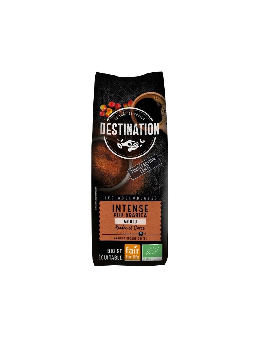 Destination Organic Arabica Intense Ground Coffee 250g Destination is een 100% biologische en fairtrade Arabica koffie met een donkere, intense branding, robuuste smaak en ronde body.
