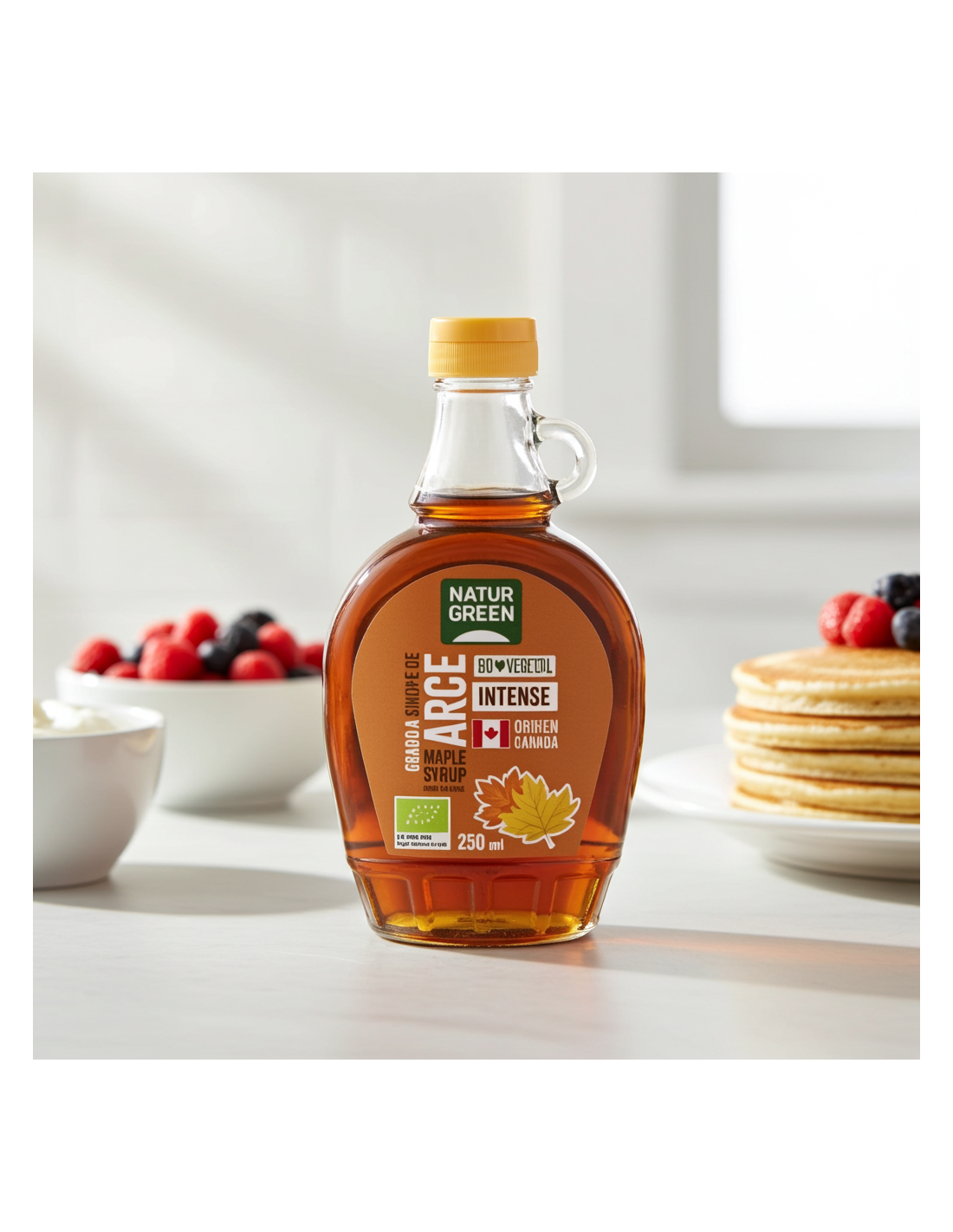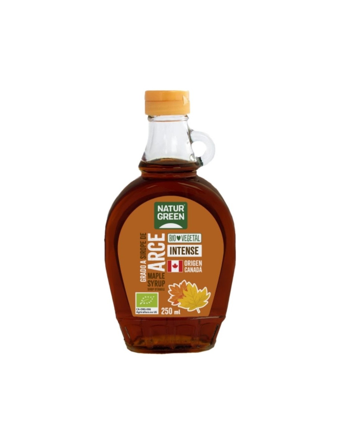 O Xarope de Ácer Biológico NaturGreen 250ml é um xarope natural obtido a partir da seiva da árvore de ácer(Acer saccharum), conhecida pelo seu sabor doce caraterístico e aroma profundo. É feito através da recolha da seiva da árvore e da sua cuidadosa concentração por evaporação, resultando num xarope espesso e dourado com um sabor suave e notas de caramelo.
