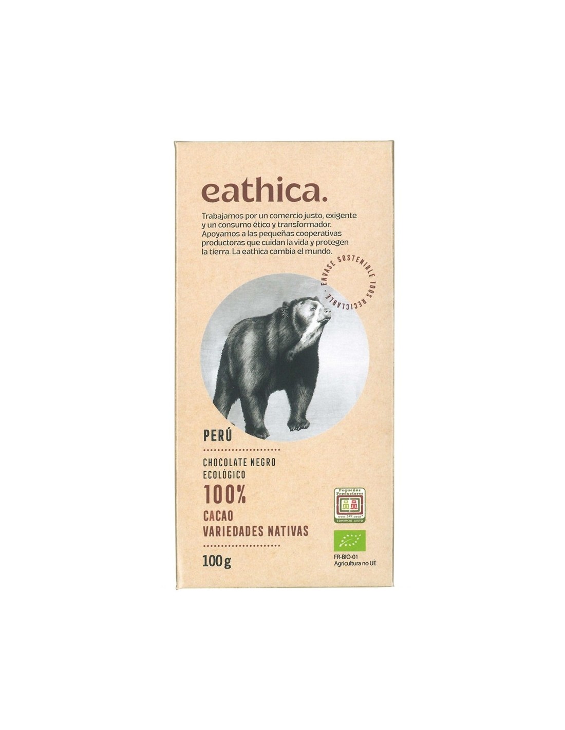 O Chocolate Preto 100% Cacau Biológico do Peru da Eathica é uma experiência sensorial única para os verdadeiros amantes do cacau. Elaborado exclusivamente com cacau biológico de origem peruana, este chocolate oferece um sabor intenso, com nuances frutadas e ligeiramente amargas, caraterísticas das melhores variedades de cacau fino.