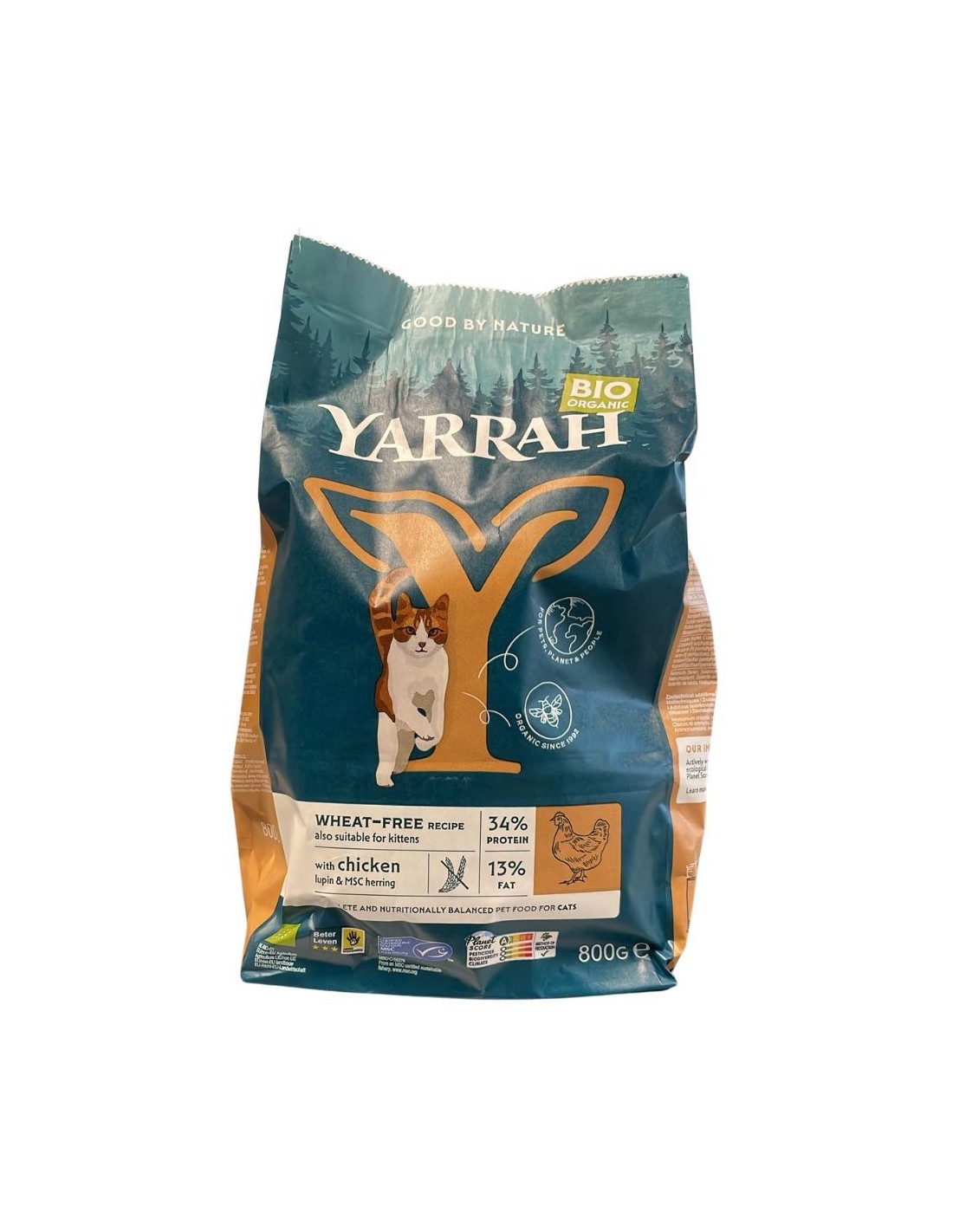 Yarrah Organic Chicken Cereal Free Cat Food é um alimento seco orgânico formulado sem cereais, feito principalmente com frango orgânico.
