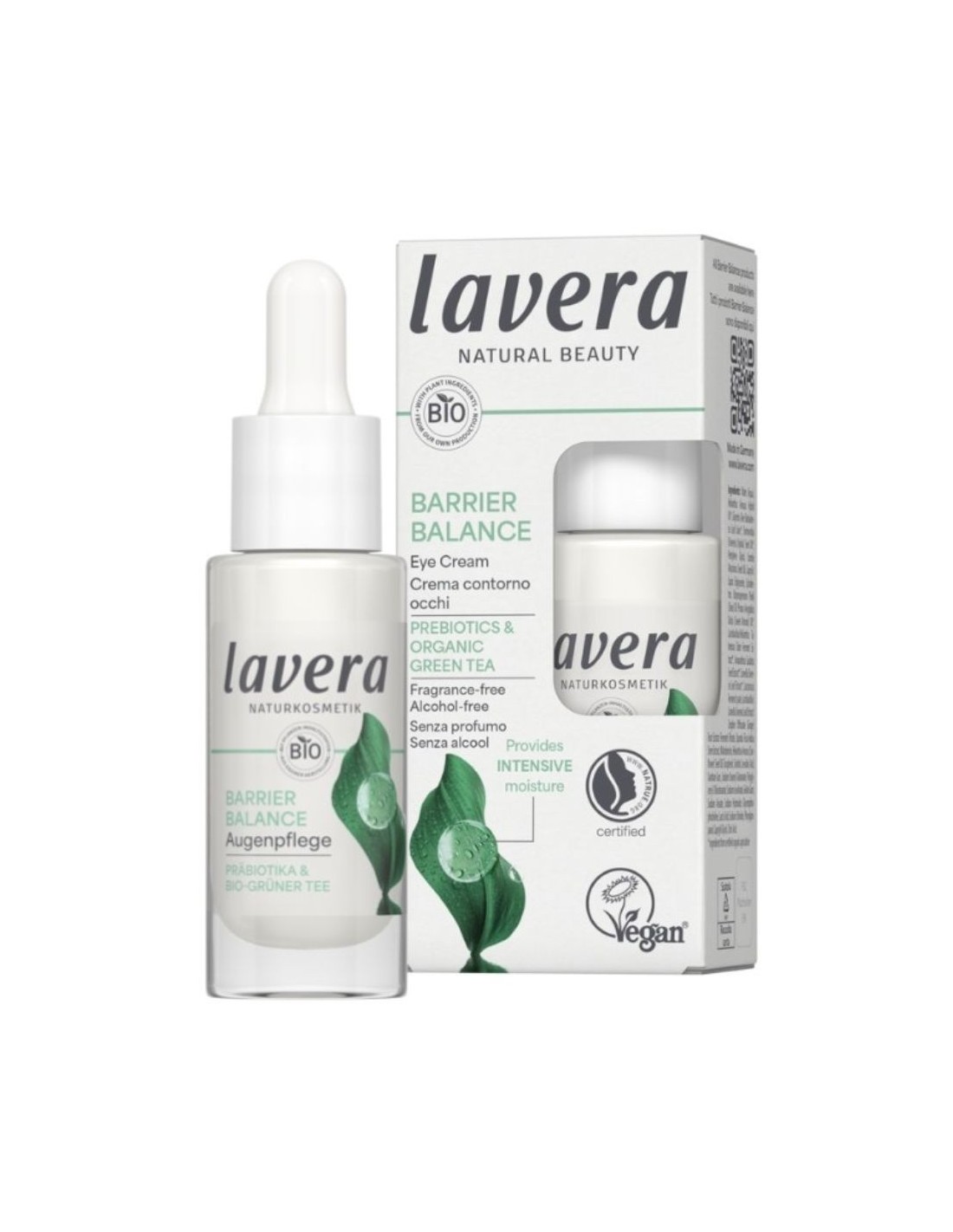 Lavera Barrier Balance Eye Contour 15 ml é um tratamento específico concebido para proteger, equilibrar e hidratar intensamente a pele delicada à volta dos olhos. A sua fórmula avançada actua reforçando a barreira cutânea e apoiando o microbioma natural da pele, proporcionando um cuidado profundo e altamente tolerável para esta área sensível.