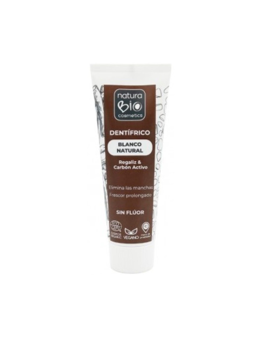 Natural White Toothpaste Licorice & Bio Active Charcoal 75 ml da Naturabio Cosmetics é uma alternativa natural, vegan e altamente eficaz para quem procura um branqueamento dentário suave sem ingredientes agressivos. A sua fórmula combina carvão ativo natural, menta biológica, alcaçuz e funcho para proporcionar um cuidado oral completo e uma sensação de frescura duradoura.
