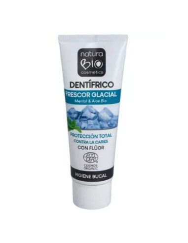 Naturabio Cosmetics Glacial Freshness Eco Toothpaste 75ml é um dentífrico ecológico e vegan concebido para oferecer uma proteção anti-cárie completa, graças à sua fórmula com dois tipos de flúor que fortalecem o esmalte e ajudam a prevenir eficazmente o aparecimento de cáries.