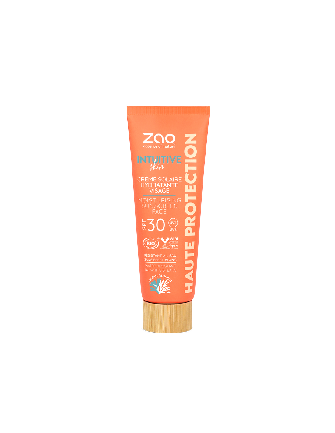 Zao Make upProtetor solar facial orgânico SPF30 que hidrata a pele e oferece uma proteção eficaz contra os raios UVA e UVB sem deixar marcas brancas.