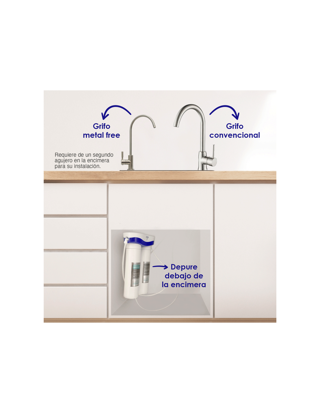 ⚠️ Instalação não incluída. A instalação do equipamento deve ser efectuada por um profissional qualificado. É importante respeitar a ordem de instalação: entrada de água pelo filtro de carvão e saída pelo cartucho remineralizador.